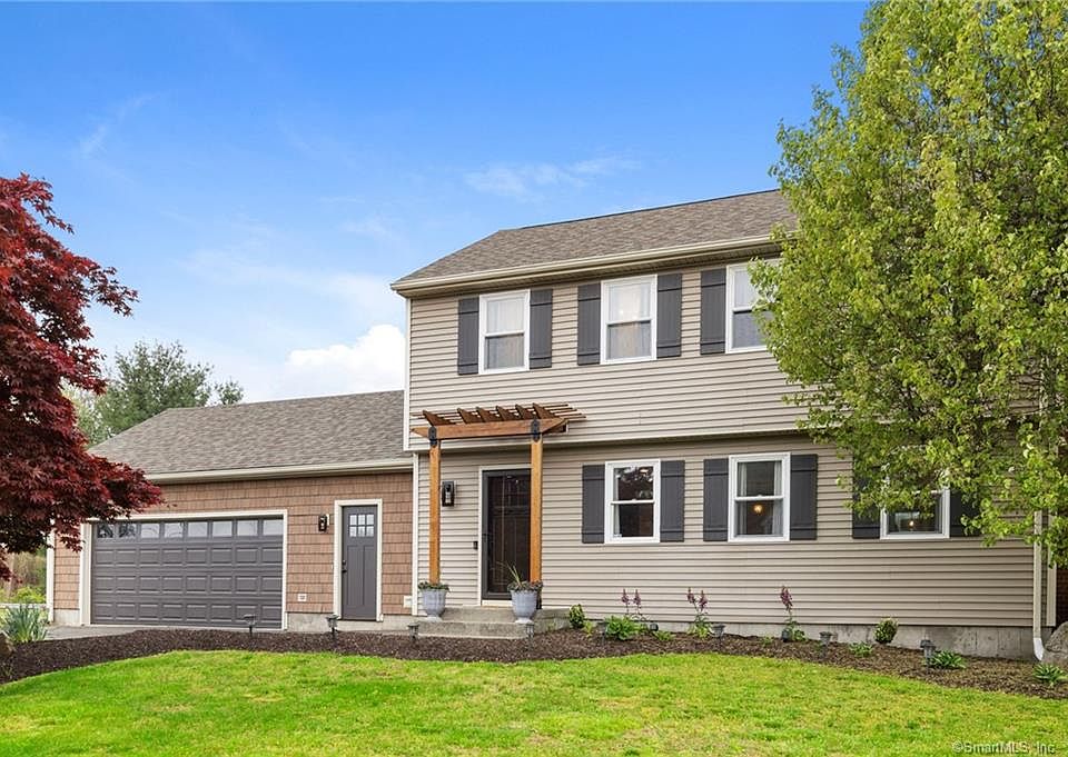 This 3 bedroom, 3 full bath colonial with 2 car attached garage has been completely remodeled, inside and out. Fully updated in every way in 2018 with quality materials, craftsmanship and style! Open floor plan on the first level is GORGEOUS with hardwood throughout. Dream kitchen with large island, stainless appliances, propane range, and beverage cooler. Formal dining room has sliders to deck and is open to the spacious living room which has a wood burning fireplace. Full bath and laundry room are also on the first floor. Upstairs you'll find primary bedroom with dual closets and a stunning full bathroom. Two additional bedrooms and full bath are on the upper level. Fully finished lower level has huge rec room and two private offices. Outside is a beautifully landscaped level corner lot, composite deck, shed and matching dog house. New EVERYTHING - architectural roof, siding, deck, thermopane windows, plumbing, propane forced hot air, central air conditioning, smart thermostat, smart fridge, flooring, and anything else you can think of.