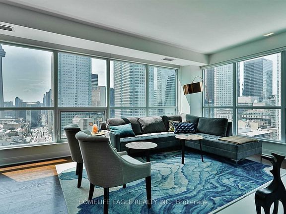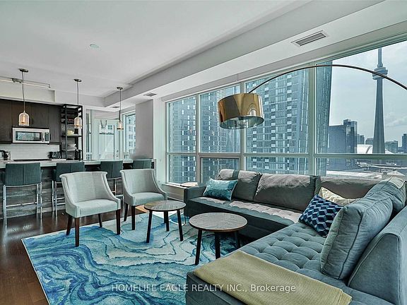 This fully furnished, exceptionally spacious 24th-floor corner suite with a balcony offers sweeping views of the skyline, including the iconic CN Tower and SkyDome. Offering 2 bedrooms, 2 spa-inspired bathrooms, 1 premium parking spot (equipped with a personal EV charger) and 1 locker, this suite redefines luxury living. Indulge in the refined interior, where the primary bedroom with a king-size bed, boasts a walk-in closet and a lavish 4-piece ensuite. Every detail has been curated with care-designer furnishings, premium finishes, and a full range of high-end appliances and everything you need for a turnkey, elevated lifestyle. Located in the heart of the city, this residence enjoys a flawless walk and transit score of 100. Steps from Union Station, the Financial District, the historic St. Lawrence Market, and a dynamic array of restaurants, shops, theatres, and nightlife, it offers an unparalleled urban experience. Residents of this exclusive community enjoy world-class amenities: 24-hour concierge service, an outdoor pool, private movie theatre, library, guest suites, cutting-edge fitness centre, rooftop terrace, billiards room, residents' lounge, and a sophisticated party room complete with a wet bar. Escape the ordinary and live a life defined by luxury, convenience, and impeccable taste at one of Toronto's most distinguished addresses. This iconic address-one of Toronto's most coveted and talked-about-needs no introduction. Designed for discerning professionals, London on the Esplanade embodies the essence of sophisticated urban living in a boutique setting that fuses elegance with downtown energy.