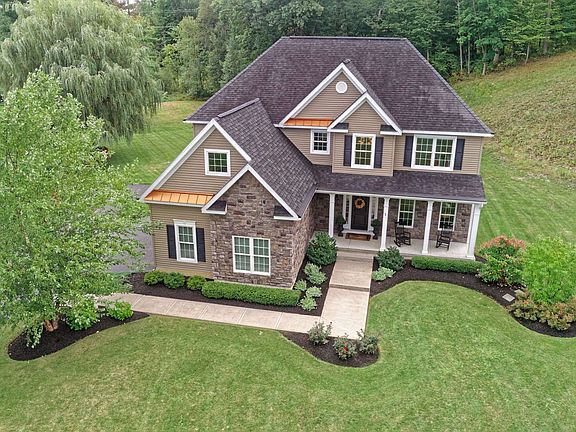 This meticulously maintained, 9 year old custom colonial sits on a private 1.09 acre manicured lot & shows like a parade of homes winner with all of the luxurious amenities! The striking eat in kitchen features an abundance of custom cabinetry, SS appliances, gas stove, hood, oversized island, pantry, & wine fridge! The 2 story great room offers plentiful natural light & a gas FP! The Dining Room is breathtaking with the accent stone wall & moldings! Remarkable balusters on stairwell lead to a spacious landing & 3 bedrooms up. The impressive master offers a trey ceiling, tremendous woodwork, a stunning granite en suite & a sizable walk-in closet! Lovely rec area in basement plumbed for kitchenette! Hardwoods throughout most of home! MULTIPLE OFFERS BEST AND FINAL DUE BY 8:30 p.m. 9/22/20