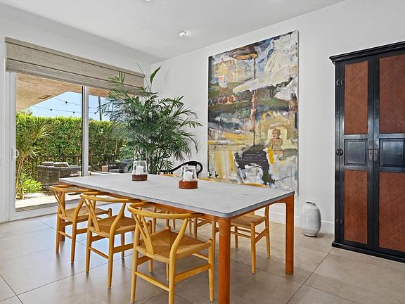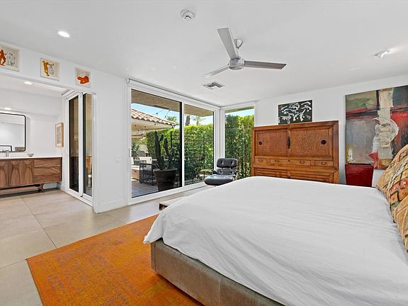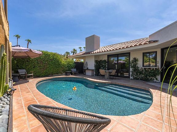Upgraded 3 bed / 3 bath home with private pool exudes style, quality and privacy with a boutique hotel vibe!Imagine coffee in the morning by your pool or sipping a glass of wine in the evening by one of two distinctive fireplaces.The owners made several tasteful updates including porcelain tile floors throughout; New dual-paned windows and sliders; Custom blinds; Bathroom tile and cabinetry; Kitchen upgrade with quartz counters, new cabinets and Bosch appliances. This home impresses the moment you enter the foyer. You know you are somewhere very special. The three en-suite bathrooms sport new tile and fixtures while the custom Primary vanity catches your eye with a design MCM aficionados will instantly recognize. The third bedroom/den beckons with a rare second fireplace and the guest bedroom with adjoining private courtyard offers views of the mountains to the west. The light-filled breakfast room is only steps from the pool, laundry and attached garage. Outside you'll find a new Saltillo tile decking, private courtyards, fruit trees, and a 35-panel solar system. This spectacular home offers desert living the way it was meant to be. All centrally situated within the Springs Country Club in the heart of beautiful Rancho Mirage. What more could you want?