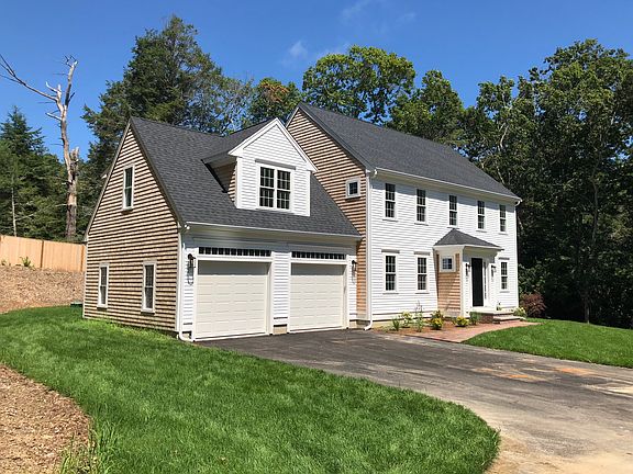 Brand new custom built colonial located walking distance to historic downtown. This 4 bed, 2 ½ bath home offers a stunning gourmet kitchen with coffered ceilings, white maple cabinetry, farmers sink, tiled back splash, quartz counters, island seating & bonus eat in area. The vaulted Living Room offers gas fireplace, custom mantle, ceiling fan, slider leading to large private custom patio. Formal dining room offers shadow box windows, chair rail & crown molding. A private office with barn doors & hardwood flooring complete the beautiful first floor. Master suite, private bath featuring custom walk in tiled shower, double sinks with marble counters & floors, large walk in closet & 2 additional his & her closets and sitting area. 3 additional 2nd floor bedrooms with ample closet space, full bath & 2nd floor laundry, Cntrl air, Large 2 car garage, Abuts Heritage Museum gardens, common area with gazebo on Upper Shawme Pond to store your kayak