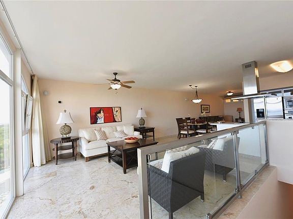 Shell Castle Club 68 in Palmas del Mar is a spacious 4 level townhome with gorgeous views from every level. The main level features the foyer, an open kitchen, living, and dining areas, adorned by floor to ceiling glass windows, one level up and you'll find two bedrooms a shared bathroom, an incredibly spacious master bedroom, with sitting area and large patio overlooking the Caribbean sea. The en-suite master bath features dual sinks, his and hers shower and a large walk-in closet. One more level up and you'll find another full bathroom, room and roof terrace with incredible ocean views. we then take the elevator all the way to the bottom floor and you'll find a large open area with a full bathroom, floor to ceiling glass and glass sliding doors that lead to the private pool with water feature. The home also includes a power generator as an added very convenient feature.