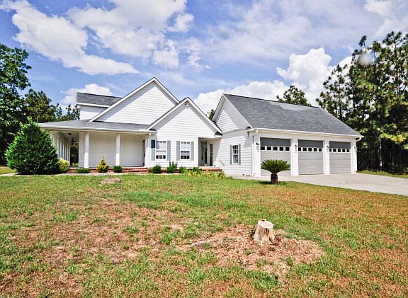 Reduced $80,000! 3.32 Acres, Oversized 3 car garage w/air conditioning & full attic floor would make a great workshop with lots of storage space! Plus beautiful wrap around porches! House wired for whole house generator...never be cold in an ice storm! County water in the home but also a well for for watering the yard! Fabulous kitchen w/granite counter tops, tile backsplash, glass front cabinets & breakfast bar plus breakfast room w/bay window! Porch just outside the kitchen perfect for grilling! Big dining rm w/chair rail & tray ceiling! Living rm also with wonderful tray ceiling! Owners suite w/walk in closet, tray ceiling and bath w/ceramic tile floor, 2 separate vanities, jetted tub & separate shower! Spare bath also w/ceramic tile floor! Home w/full attic storage, separate laundry rm plus whole house fan! Located on culdesac! Qualifies 100% financing!
