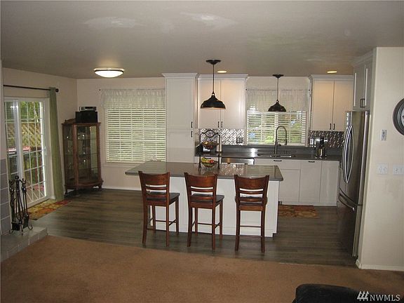 Brand new kitchen in this lovely 4 bedroom home set back on a beautiful corner lot. Plenty of off street parking, even room for an RV. Plus extra parking spot up top. Large master suite with walk in closet and spacious bath room off master. Covered deck off living room, fireplace, large laundry room. 2 bedrooms on main level and 2 more on lower level. A must see! Lots of built-in's too!