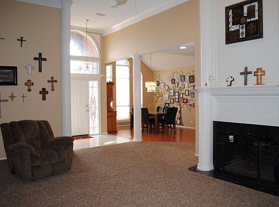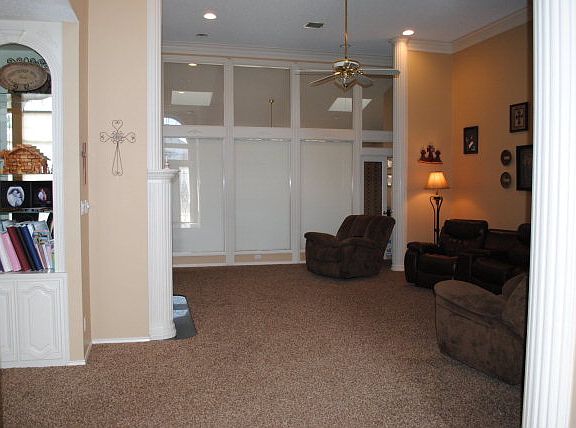 Beautiful 4 bedroom, 3 bath home on corner lot! Large living area w/double sided fireplace into cozy den w/wet bar. Spacious kitchen w/tons of storage. Sequestered master has separate jetted tub, shower & vanities w/ huge walk in closet. Jack & Jill bathroom between 2 rooms with 2 separate vanity areas. 4th bedroom is sequestered w/access to full bath. Sunroom opens to patio w/hot tub & turf lawn.