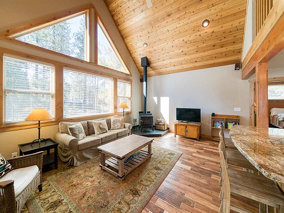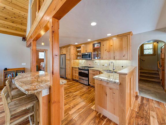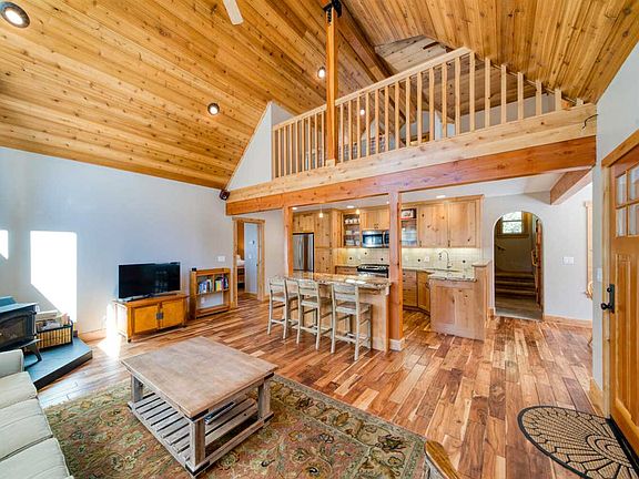 ATTN REALTORS: DUE TO HIGH ACTIVITY, SELLER WILL ENTERTAIN OFFERS until 4/14/21 AT 4 PM. Seller will review & Respond to offer by 4/16/21 at Noon. PLEASE SUBMIT YOUR BEST OFFER. STUNNER and SO SPECIAL ON SHOSHONI TRAIL! This one will CHECK ALL THOSE BOXES!! Custom Built by local Roger Tew this "Mountain Chic Cabin" with a Loft is just what you were waiting for: Beautiful Hickory floors throughout main level, soaring PINE ceilings, TALL Windows a corner WOODSTOVE (forced air propane unit for those colder winter mornings!) custom kitchen and cabinets with beautiful GRANITE Counters, Stainless appliances and a eat at the BAR granite counter top. Master Bedroom is so spacious with slider onto private deck.... notice how the outdoors come in. Bathrooms both have porcelain tile flooring, double sink vanity and Tub/Shower. Main floor also has the perfect size utility room with Stacked Washer/Dryer, Laundry Sink and storage. UPSTAIRS Loft Space is open and spacious, actually sleeps four plus a crib! Follow the covered Breezeway to the beautiful detached garage, completely finished on the inside - and then... BONUS: Follow the beautiful wooden staircase to a charming room above. Could be a home office, Work out Room, Overflow bedroom for guests.... many possibilities here! This home has been a popular 5 STAR active property on the VRBO program and has many bookings into the 2021 season - so it is perfect for that owner that wants to supplement with rental income.