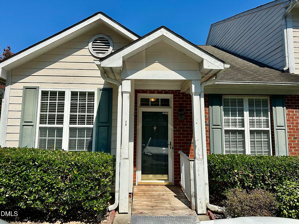 Freshly updated end-unit townhome in a desirable gated North Durham community. The main level offers two bedrooms and two full baths, a bright open kitchen, a dining area, and a family area with a soaring vaulted ceiling. Provides easy indoor-outdoor living with a cozy screened back patio and private side yard for extra space and privacy. This home features fresh interior paint, new luxury vinyl plank flooring, and an upgraded main bathroom. Upstairs, a spacious loft is perfect for a home office, study, or craft room. Tons of natural light all over. Fantastic location: minutes to Duke University, downtown Durham, schools, parks, shopping, and restaurants.