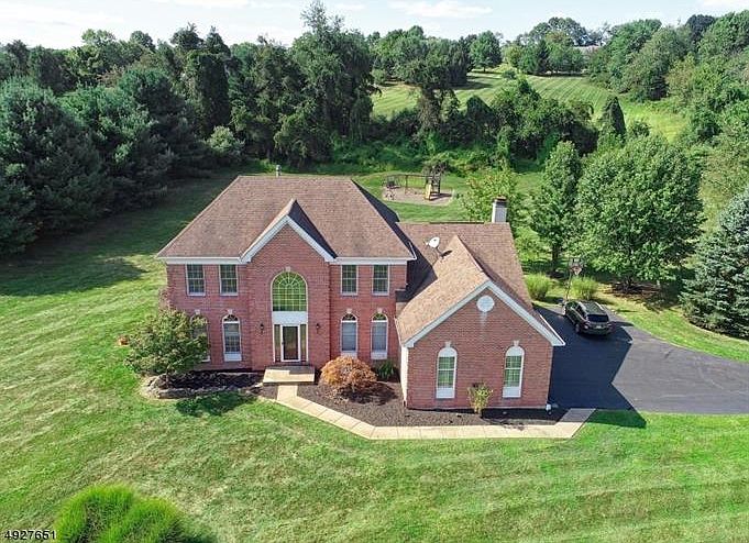 Beautifully maintained, over 3000 Sq Ft full Brick front home w 3 car garage set on a prime corner, flat lot in Alexandria Hunt Toll Bros Comm.. 2 story entry foyer, DBL. Door Entry to 1ST floor study. LR DR w circle top windows for light, bright, airy feeling. Large kitchen w center island, 4 burner gas cooktop, double oven, tile backsplash, SS APPL. and slider w custom shades to large deck. Stepdown to Cath.FR w BRK FP and skylights. DBL. DR. entry to MBR w large WI closet, beautiful Mbath w double vanity, jetted tub, stall shower and skylight. 3 more BRs and full BA, comp. 2nd floor. Additional features include Recessed lighting, hardwood floors, speaker system throughout home, ext. trim package and large swing set. CEN Vac on 1st floor. 2 Zone Heat and AC, Rec. Rep. Deck, Septic Ins.8 19.