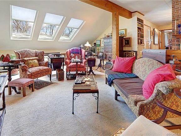 As you enter this four-bedroom Colonial, you will notice how much charm this home has. There is a large eat-in kitchen with cherry cabinets, granite countertops, and a center island that features a vaulted ceiling breakfast area with hardwood floors and sliding glass door to go out to the deck. Off the kitchen is a sunken living room with new skylights, a fireplace, and hardwood floors. The large formal dining room has hardwood floors. There are four bedrooms upstairs. The primary bedroom has a full bath and a walk-in closet, and one of the bedrooms is being used for an office. The lower level is finished and includes a den and exercise room. There is a Backup Generator hookup. Sit and relax on your stone patio overlooking your beautiful landscaped property. Excluded chandeliers in the front hall and primary bedroom closet, washer & dryer. The school bus stop is at the corner of the property. The outside of the house was painted two years ago. Eichler's Cove Marina and Launch & Lake Lillinonah Launch are nearby and also there are walking trails.
