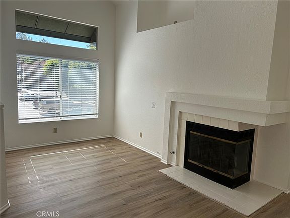 GORGEOUS FIRST HOME OR DOWNSIZE HOME! New wide-plank vinyl floors sweep through the space, perfectly anchoring this light, bright home with stunning cathedral ceilings, all freshly painted and ready to move in. Beautiful open floorplan features a separate dining space and generous living area that wrap around the perfectly sized kitchen. You can catch up with guests while you cook, or take the moment outside to your lovely large balcony - perfect for entertaining or relaxing. If the nights are chilly, cozy up near your fireplace or watch a movie. A generous principal bedroom with a large walk-in closet - complete with organizers - has its own balcony, and is a sweet spot for morning coffee. The bathroom features pretty wainscoting and a shower/tub, perfect for you and your visitors. With your own laundry, and a direct access garage, this home is complete, private and welcoming. A wall of storage cabinets in the garage make living easy too, plenty of space for those Costco runs! Perfectly located on the upper level of The Palms @ Laguna Heights, it is minutes to the world famous Dana Point for shopping, dining, and beach days. A beautiful association pool/spa, Sport court, walking trails, pocket parks and a tot lot make this a highly desirable community. It's good to be home!