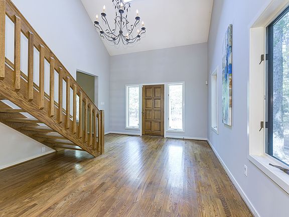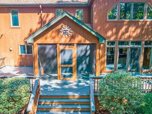 Stunning Custom Gary Gardner Lakefront all cedar soft contemporary tucked away on a very secluded just under 7 acre parcel in the Pines. Over 800' of lake frontage, private beach& incredible lake views. Meander down a private drive to this well-maintained stunner. Marvel at the unparalleled craftsmanship of a well-built home. Nothing to do here except move in & enjoy. The entire first floor inside & outside is an open living concept design so desired for today's lifestyle . Freshly designer painted palate throughout. Gleaming hardwood floors run through most of the 1st floor. Neutral high-end carpet encompasses the 2nd & 3rd floors. Formal living room is open to the cathedral ceiling entry foyer & the formal dining room complete with built in cabinetry to display & store all your china & crystal. Amazing Gourmet kitchen. High end SS appliances including a Subzero Refrigerator. White cabinetry with coordinating granite countertops. Enormous center island painted in Wedgewood blue which houses the cooktop & oven. Open to the breakfast room, family room, screened porch, deck & oh so wonderful lake views. Delightful for entertaining. So much cabinet space, closet & pantry. Just off the kitchen is an extra-large laundry room with more cabinetry, sink & a door leading to a garden's dream potting station & sink. The lakeside family room enjoys a floor to ceiling stone woodburning fireplace flanked by handcrafted built in bookshelves & cabinetry. Double doors open up from the family & breakfast room to the expansive deck & screened in porch running almost the entire length of the back of the house. Step down off the deck to a stone patio and lovely pond complete with waterfall. Magnificent Cathedral ceiling master bedroom suite with a wall of spectacular triangular shaped windows affording breathtaking lake views. Sumptuous master bathroom new this year all done in greys & whites complete with his & her vanities, soaking tub, shower & WC. Impressive California walk in closet. Huge open loft to below could be another sitting room, office or even a home gym. Three other generously sized bedrooms with ample closet space complete the 2nd floor. Step down to a bonus space off the third bedroom with a large cedar closet could be a playroom, art studio, to name a few. The third floor!! Great for the teen, au pair etc. . Walk into floored and lighted attic space. There is nothing like living on a lake..boat, swim, fish, ice skate. Nature abounds. WOW
