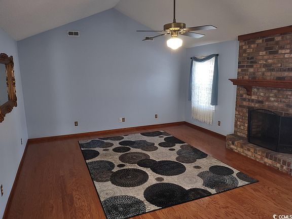 This 2 ½ bath home features 3 large carpeted bedrooms and large family room with a brick fireplace and hardwood floors. The kitchen area has beautiful wood cabinetry and tile flooring leading through the utility room to the attached 2 car garage. There is plenty of off road parking for guests or a growing family. The spacious back deck is great for entertaining. This home has been well maintained. The previous owner replaced all windows and sliding doors with energy efficient “Window World” windows. The present owners had the old HVAC system professionally replaced with a high efficiency “Carrier” unit in 2019. Additional garage attic storage was added. Kitchen sink, faucet and garbage disposal were all newly installed in 2020. The rear deck was restored in 2021. The cedar sided home was repainted in 2022. The bedrooms were renovated and newly carpeted in 2023. The proximity of this property allows easy access to Socastee Elementary School and Socastee High School. It is centrally located to enjoy a variety of Myrtle Beach activities. The Market Common, with its uptown/downtown vibe, is only 3 miles away and provides restaurants, shopping and entertainment. Plus the Beach is only 8 miles away! With a voluntary HOA, this is the perfect place to live, away from heavy tourist traffic, yet close enough for a young family or retirees to enjoy all the Myrtle Beach area fun!