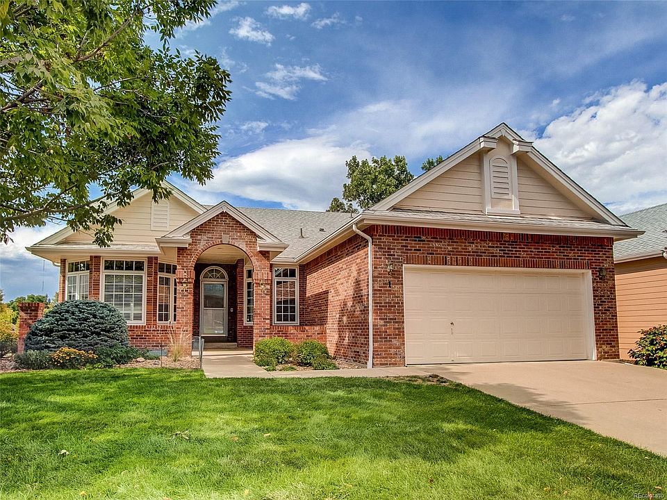 Beautiful and spacious ranch style living in Gleneagles Village. Slab granite counters with tile backsplash, 42in cabinetry, double oven, breakfast bar, eat-in kitchen nook, hardwood flooring. This popular Scottsdale model boasts soaring ceilings, gas fireplace and built-in shelving in family room, large formal dining room. French doors lead into the office with built-in bookcases. The master suite has a walk-in closet and 5 piece master bathroom with granite counters. The main floor also has a secondary bedroom, bathroom, laundry room with sink. Basement is finished with a 3rd bedroom, large family room & bathroom. Plenty of storage space too. A large covered deck with a privacy screen and greenbelt views will fit your entertainment lifestyle. Two car attached garage. Fresh interior paint and move in ready! Club house, swimming pool, lots of activities, low maintenance patio home in a nice gated community.