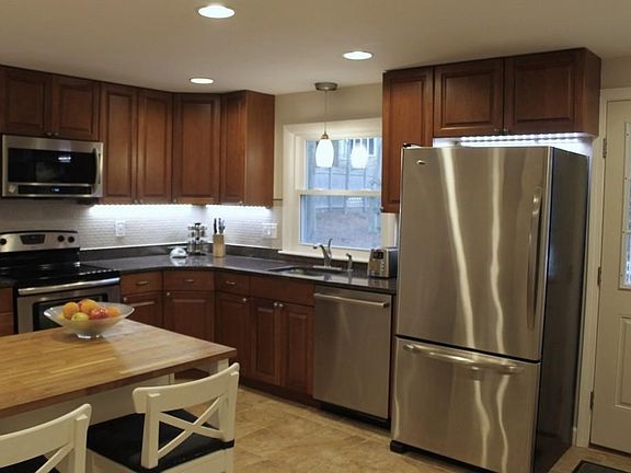 3 bed/3 bath single family largely renovated in 2016 in the sought after Estabrook/Diamond School area, in a quiet street, with easy access to highway 95. The main level (1480 sq ft) features a large kitchen with granite countertop and recessed lighting, a dining room and a living area with a fireplace. The master bedroom has ensuite bath with shower. There are two bedrooms and an additional bathroom with bathtub. The lower level (600 sq ft) opens to a large luminous family room, with a 2nd fireplace and built-in cabinets, an area used as gym, which can be potentially a home office or easily adapted as 4th bedroom, a 3rd full bathroom (2016) with shower and a laundry/mudroom with new appliances which leads to the 2 and half car garage.