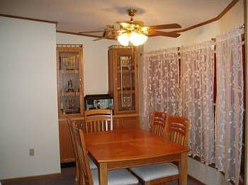 Here's your opportunity to own a 3 bedroom, 2 bath ranch-style double wide located on a corner lot leading to a low traffic cul-de-sac. The living room boasts a fireplace and cathedral ceiling. The dining room has a bay window and built-in credenza. The eat-in-kitchen is spacious and inviting. The three bedrooms are large and the master bedroom has a walk-in closet and master bath with shower and tub.