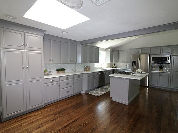 - Kit Dscrp: Dining Area, Ceiling Fan(s), Flooring - Hardwood, Skylight, Ceiling - Cathedral, Kitchen Island, Stainless Steel Appliances, French Doors, Recessed Lighting, Ceiling - Beamed, Countertops - Upgraded, Window(s) - Bay/Bow/Box, Wine Chiller, Chair Rail, Gas Stove