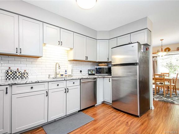 Beautiful end unit townhouse with updated kitchen, open floor plan, soaring ceilings and perennial gardens! Stylish kitchen has been remodeled with gray cabinets, granite, subway tile, gas range and stainless steel appliances. Open to the living room and dining room with large windows for plenty of sunlight. Fireplace with white washed brick is the focal point of the living room. New furnace and central a/c. Full basement is partially finished yet still plenty of room for storage with built in wood shelving. Laundry is located on the main level. 2nd level has 2 carpeted bedrooms. The Master has a walk in closet and direct access to the full bathroom with 2 sinks. A private outdoor area is gardened with gorgeous perennials. One car garage, efficient gas heat, low HOA fees. A great place to call home!