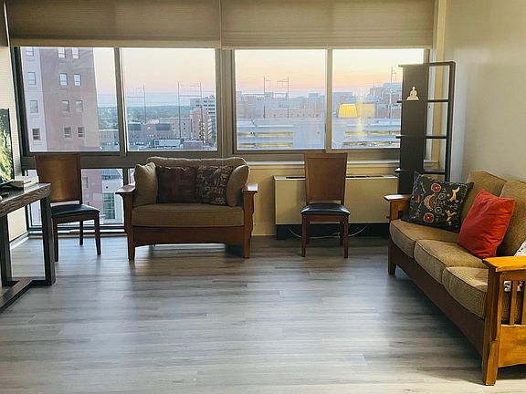 Furnished, freshly painted, new floors, river view from balcony, gym, pool, skydeck, lounge, game room, located in the heart of New Brunswick. Rental fee Includes gas, electric, sewer, and water. No pets, no smoking anywhere in the unit or on the balcony, parking is an additional monthly fee in the attached, residents-only garage with direct building access.