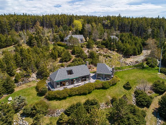 Whales Ledge is certainly a one of a kind oceanfront gem with over 11 acres of sloping rugged Maine Coast down to a beautiful stone beach with your own deep water pier with multiple moorings. There are 4 buildings on the property with the main building having a kitchen, dining and large great room with fireplace and also a loft bedroom above with its own deck. The next building is basically the master suite and then the larger upper building hosts another kitchen/living area with two bedrooms down and a loft bedroom up with 4 additional beds. The fourth building is just storage for the golf cart, gator, and small kitchenette with bathroom. This incredible property abuts the Maine Coast Heritage Trust protected lands with hiking trails that go right out your door to anywhere on the island. The views back to MDI and beyond are simply breathtaking. Sunsets are also a must see from this property.