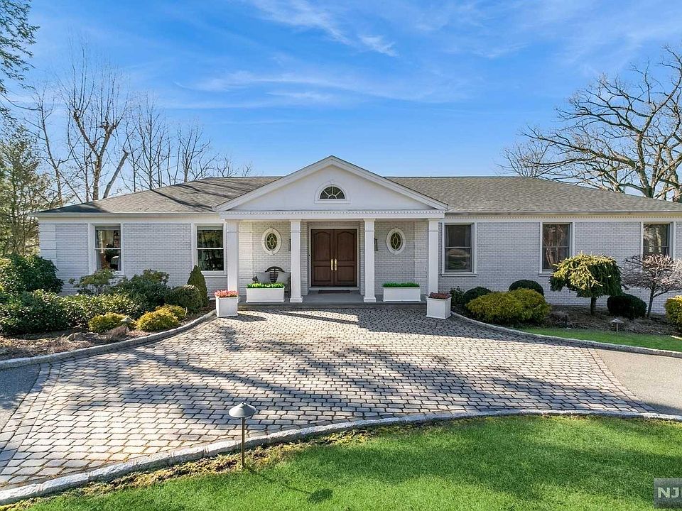 Watch the sunset, gaze at the Ramapo mountains and enjoy four seasons from the full level wrap around deck of this one of a kind home. A few yards from the Nature Center and located on a cul-de-sac, this one of a kind ranch with high ceilings and exquisite moldings has 6 large bedrooms and 3 1/2 renovated baths. The home encompasses over 5500 square feet of living space which includes a spacious finished lower walk out level with additional 2 bedrooms/office, 2 full bathroom, a wet bar, sitting area, lots of storage and 3 car garage. The property is a 1 acre with lush areas to entertain plus a lighted sports court to play tennis, badminton, basketball and more any time of day or night. The ease of modern upscale living, with a landscaped acre, incredible views, and the amazing location make this home a must see.