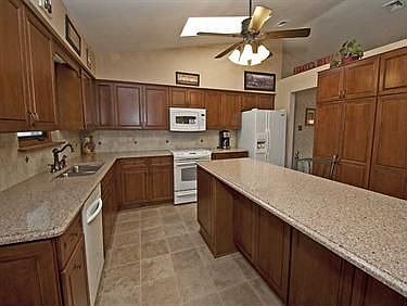 Impressive & inviting w/elegant appointments-Beautiful arches & soaring ceilings masterfully blend w/warm woods & the crisp cool beauty of ceramic-Stately exposed aggregate driveway, patio & walks-FOUR GARAGES-oversized 2 car detached garage w/elec. & 2 auto openers-Exquisite gourmet kit. w/accenting quartz, bronze & ceramic is anything but boring-Top quality Pella windows & door products-Fully finished walk-out lower level w/raised stone fireplace & full bath-Located at the end of plan, no thru traffic-