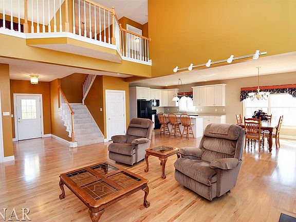 GORGEOUS home with one of the best locations in Old Farm Lakes! On a cul-de-sac & 3 sides of the home over look the gorgeous lake! Open main living area w/ 2 story family room boasting wood floors, tons of windows/light & loft overlook opens to the HUGE eat-in kitchen w/ granite tops & island! 1st floor master w/ coffer ceiling includes an en suite bath w/ 2 vanities, soaker tub & separate shower! Finished basement w/ spacious family room, bedroom, full bath & potential 5th bedroom! AMAZING Four Season's Room opens to extra-large deck- Both offer such enjoyment of the AMAZING VIEW!