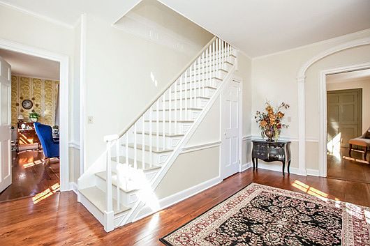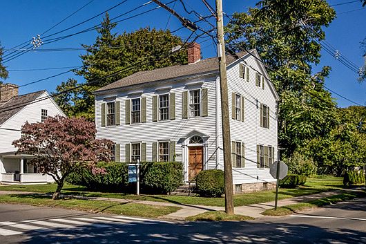 For more information on this property, contact William Raveis Real Estate, Mortgage & Insurance at 203-672-4400 or helpdesk@thewhitemanteam.com. This 1803 Federal style home has elegant trim work inside and out. This house sits amid other historic homes and is in the heart of the Historic District looking over the north end of the Guilford Green. The level lot has a paved driveway and a 2-bay garage. On the south side is a covered "rocking chair" porch. The front entry is elegant and welcoming.. The living room has wainscoting, chair rail and detailing on the mantle. The scale of the 1st and 2nd floor is complimented by high ceilings. The large dining room has an attractive fireplace mantle. A 1st floor bedroom w/full bath is next to the dining room. The eat-in kitchen has a large fireplace, antique surround, pantry and a half bath with W/D hook-up. On the 2nd floor are 3 bedrooms, a study, playroom, family room and full bath. There is a back stair off this room. There is expansion potential in the walk-up attic. The property is across the street from the Library and is a quick stroll across the Green to shopping, restaurants, train station and the Marina and beach.