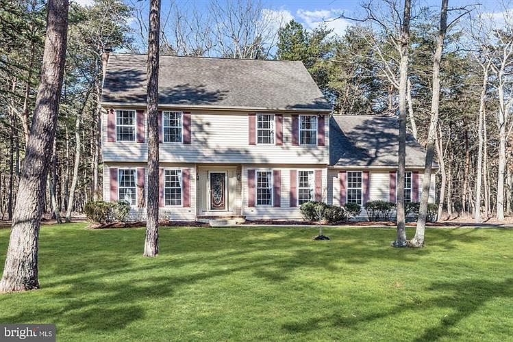 Move in ready and waiting for you. This well maintained center hall Colonial is situated on over 3 acres . Beautiful hardwood flooring welcomes you with a formal living room with crown molding, wainscoting, and plenty of windows. The adjacent formal dining room has crown molding, chair rail and hardwood flooring as well. The large eat in kitchen has a full stainless steel appliance package including a new Samsung refrigerator, Bosch range, dishwasher, and wall oven with warming drawer. There is a newer center island and Corian counter-tops. The sliding door allows access to the backyard deck to enjoy the beauty of your private natural yard full of plantings and wildlife. Open from the kitchen is a nice sized family room with exposed wood beams, brick fireplace, and build in shelving. The large windows allow natural light to filter in while enjoying the privacy and tranquility offered here. There is a half bath and laundry room, as well as inside entry to the 2 car garage with additional attic storage. Upstairs, you ll find 4 large bedrooms, all accommodating king sized beds. The master bedroom suite offers a large walk in closet, 2nd closet with organizer system, and beautiful hardwood flooring. The French doors to the master bathroom showcase the large soaking tub, recently tiled shower, and double vanity and private toilet with pocket door. There is a full basement with high ceilings which you can finish, or use for storage. The septic system was replaced in 2017. Just a few minutes from Routes 70 and 206, you can easily get to shopping, restaurants, bridges and military bases. Turn key property.