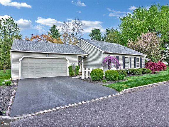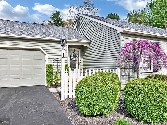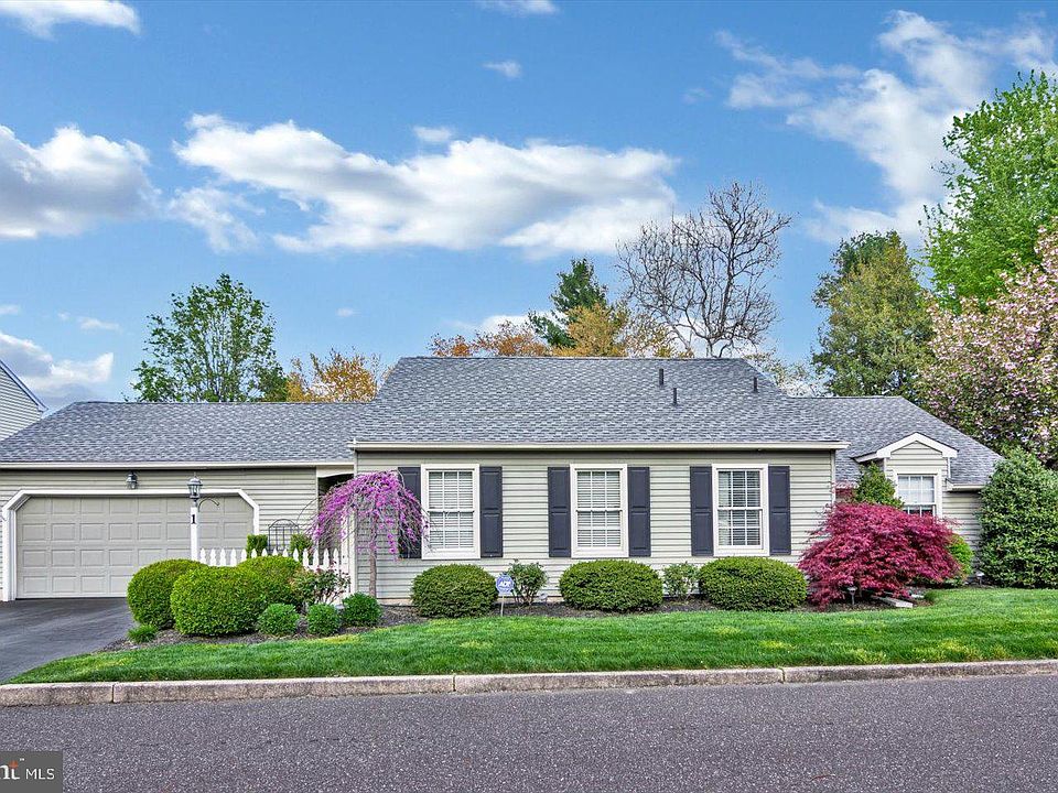 Discover the epitome of single-floor living in this exquisite Medford Commons residence, where timeless charm meets modern luxury. Nestled on a meticulously landscaped lot, this classic colonial ranch welcomes you with its manicured beds adorned with Japanese maples and flowering trees, setting a picturesque scene from the moment you arrive. Step through the custom glass-paneled front door into a world of elegance, where rich natural cherry hardwood floors grace the foyer and living spaces. Tasteful touches such as custom chair rail and crown molding adorn the living and dining areas, all freshly painted in today’s most coveted neutrals. Entertain effortlessly in the open-concept great room, featuring a brick gas fireplace with a classic dentil molding mantel, perfect for cozy evenings by the fire. Recessed lighting and a triple window infuse the space with natural light, while a boxed bay window in the dining area offers serene views of the private grounds. The heart of the home awaits in the gourmet kitchen, thoughtfully reconfigured for optimal functionality. 42 inch KraftMaid soft-closing cherry cabinets pair harmoniously with rich granite countertops and a tumbled marble backsplash with a glass tile listello accent. Stainless steel appliances, including a 5-burner gas stove and French-style refrigerator, cater to culinary enthusiasts, while a wine refrigerator and glass cabinets add a touch of sophistication. Adjacent to the kitchen, a sunny breakfast area boasts an Andersen French sliding door leading to the inviting sunroom—an idyllic space for enjoying three seasons of natural beauty. Step outside onto the newly added decks, where built-in benches create the perfect setting for outdoor gatherings amidst lush landscaping. Retreat to the generously sized primary suite, adorned with neutral decor and featuring an en-suite bath with an oversized shower, cherry cabinetry, and luxurious granite countertops. A spacious walk-in closet completes this serene sanctuary. An additional well-appointed bedroom and updated main bath provide ample space for guests or family members. Recent upgrades include a new HVAC system (October 2023) and a 5-year-old roof, ensuring both comfort and peace of mind for years to come. Plantation shutters and crisp white blinds adorn Andersen windows throughout, adding a classic finishing touch to this impeccably maintained home. Conveniently located just a short walk from Medford Village. With nothing left to do but move in and make it your own, this immaculate home presents a rare opportunity for discerning buyers seeking the perfect blend of luxury, comfort, and convenience.