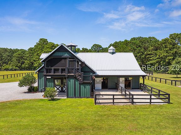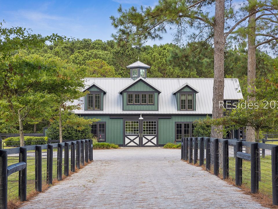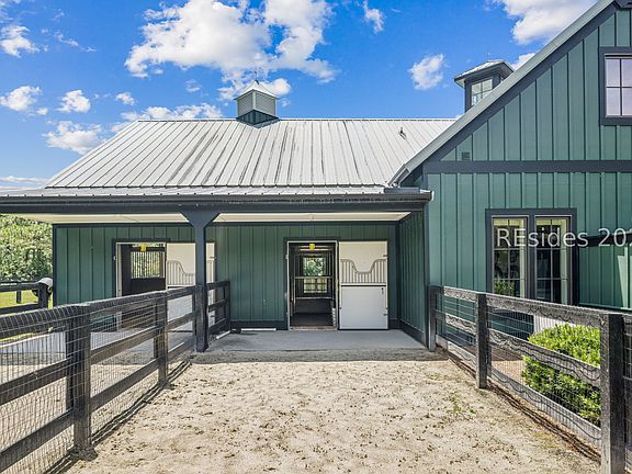 1 Straight Road is a meticulously designed 10 acre equestrian estate showcasing exceptional quality throughout. The property features four irrigated Bahia grass paddocks, each equipped with automatic waterers connected to city water. One paddock, conveniently located near the barn, includes a 60 foot round pen. At the heart of the property is an award winning four stall center isle barn with spacious living quarters above. The barn offers two full size 12x14 stalls on each side, all with direct access to outside turnout. The ground level includes equipment and carriage storage, a conditioned office, full bath, tack room, feed room, and a covered wash stall, providing both functionality and comfort. Upstairs, the 1,120 square foot apartment features a living room, dining area, bedroom, bathroom, and a generous screened porch, creating a private and inviting residence overlooking the grounds. Near the entrance to the property is a separate storage barn with two bays and covered horse trailer parking. Attached is a conditioned greenhouse, and nearby sits a well organized garden with fifteen raised beds, all enclosed by an eight foot fence for protection. A tour of 1 Straight Road makes it clear that no detail was overlooked. This is a thoughtfully planned equestrian complex where quality craftsmanship and careful design come together seamlessly.