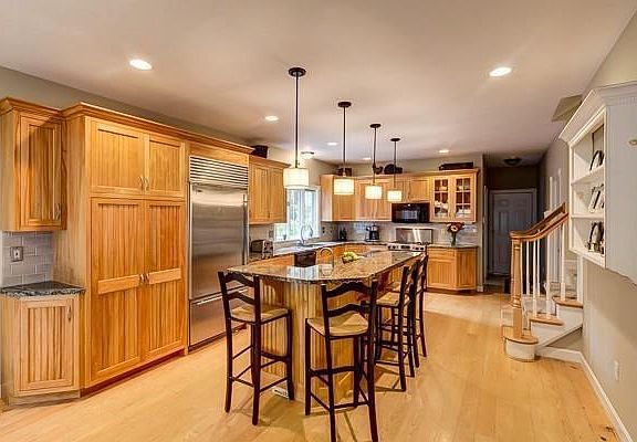 Welcome to the Rose Creek cul de sac neighborhood. This custom colonial was a builder's home featuring ~3811 sq ft across 4 levels with an inground bromine pool and cabana on 1.38 acres of manicured grounds. Huge 35 ft. long gourmet kitchen with custom built cabinets, new granite countertops & backsplash & high-end appliances featuring Jenn-Air gas cooktop, Subzero frig., veggie sink & breakfast bar. Formal dining & living rooms, each with double sets of French doors & beautiful millwork. Vaulted family room with skylights, custom built mantle & wood burning fireplace. Four to five, generous size bedrooms all with new carpet including a master bedroom suite w sitting area (new carpet not shown), plenty of closet space and luxurious bathroom w jetted tub. An au paire suite w built in window seats on level 3,  great for multigenerational living. Bathrooms with updated granite. Home office in Lower Level, Newer siding. Book your appointment today!