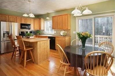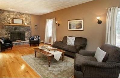 This lovely Colonial w/farmer's porch is situated on nearly an acre of private land in desirable area. The 1st floor offers 9' ceilings and hardwood floors. The eat-in kitchen w/center island leads to spacious living room featuring beautiful floor to ceiling stone fireplace. The 2nd floor includes 3 bdrms, Master Suite w/sitting area and luxurious bath. A finished basement offers family rm and office. New furnace 2010. The backyard overlooks beautiful stone walls abutting acres of conservation.
