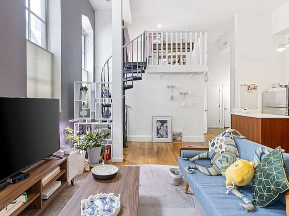 Experience urban living at its finest in this beautifully renovated 2Bed/2bath loft, located in a historic Somerville building in Union Square, just blocks from the Green Line T-stop. Featuring 14-foot ceilings and wood floors, this space boasts a stylish kitchen with Bosch and LG stainless steel appliances, quartz countertops, a mobile island, and designer fixtures. Both bathrooms offers elegant marble tile with heated floor in one of them.. A small loft overlooks the kitchen and living area, while recessed lighting, efficient baseboard heating, central air conditioning, an in-unit washer/dryer, elevator access, and heated garage parking 1 space complete the package. Step outside to the front and there is a garden seating area and you are only steps to the multitude of restaurants and nightlife that Union Square has to offer.
