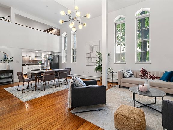 Step into a truly unique residence where history meets modern luxury. Originally a Gothic Revival church, this building was transformed into seven exclusive condos in 2005, preserving dramatic details like soaring ceilings, 8-ft pointed Gothic arched windows, and exposed brick. Unit #3 stands out with over 1,200 sq ft across two levels, featuring an open living area, a modern kitchen with granite counters, stainless steel appliances, and a spacious pantry. The lofted space, accessed by a spiral staircase, is perfect for an office or retreat, while the cozy bedroom with exposed brick overlooks the living space below. In-unit laundry, a tiled bath, and heated garage parking add convenience. The vibrant, close-knit community within the building fosters a supportive atmosphere, while the surrounding neighborhood buzzes with top-rated restaurants, boutique shops, and cultural events. Enjoy the historic details, modern features, and dynamic neighborhood that make this home one of a kind.
