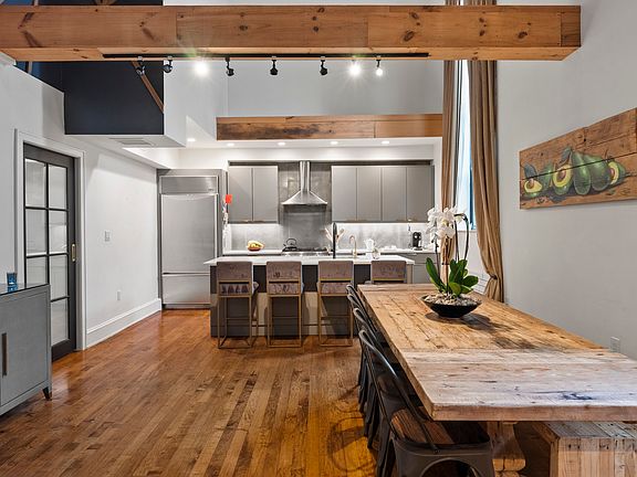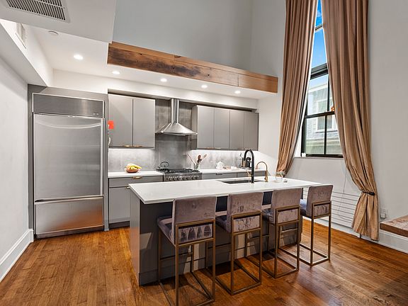 **HEAVENLY LUXURY IN HISTORIC CHURCH CONVERSION** Experience divine living in this breathtaking loft carved from a Gothic church sanctuary. Soaring 45' ceilings crowned with exposed beams & stone arches create an atmosphere of majestic grandeur, while 10-foot peaked windows bathe the space in celestial natural light. Open-concept main level showcases an incredible chef's kitchen where modern luxury meets historic character featuring premium appliances & sleek finishes that harmonize beautifully with the building's sacred past. Stone gas fireplace anchors the expansive living area, perfect for both intimate gatherings & grand entertaining. 3 bedrooms include 2 sumptuous suites with spa-inspired bathrooms & generous walk-in closets. Ample storage throughout ensures clutter-free living. A serene office space offers a quiet sanctuary for productivity. This boutique building offers the rare combination of historic splendor with modern convenience including secured garage parking & included heat. Spiritual heritage meets sophisticated design. Can be delivered furnished for $300 extra / month. Heat included. Tenant pays Gas, Electric & Wifi/Cable. Garage Parking space included. One month broker fee paid by tenant. Can be delivered furnished for $300 extra a month.