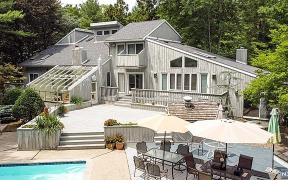 This warm and inviting Contemporary, with exceptional entertainment value, will not disappoint! Located on a private Cul-De-Sac in Montvale's most desirable West Side, this unique home has a lifestyle of Luxury living, with one of a kind amenities. Great room with soaring ceilings and fireplace greet you as you enter the entry foyer. The updated kitchen with SS appliances and Granite countertops flows right into the family room. Also on the first floor is a formal dining room, and a large master suite w/ exercise room, walk in closet, gorgeous light filled master bath and an in door Lap Pool! Extras include a fully finished basement w/ full wet bar, billiards room, gorgeous custom wine cellar, sun room with hot tub, central vac, and much more! The tranquil backyard is extremely private and offers a concrete heated pool, with a cabana that features a full kitchen and full bath! Close to school, parks, and transportation to NYC!