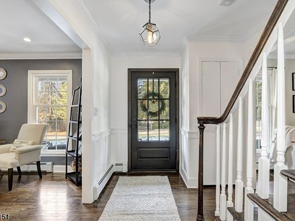 Poised on .60 acres in desirable Brookside community. Transitional style floor plan w Modern Farmhouse elements. Attention to detail exemplifies pride in ownership. Main floor offers stunning EIK feat custom cabinetry, chef grade SS appl, quartz countertops, marble subway tile backsplash and large island w breakfast bar, FR w French doors lead to level backyard, bluestone patio and pergola perfect for dining al fresco or unwind at the end of the day, gracious formal LR, sun filled DR, updated 1 2 bath and spectacular mud room laundry room w folding station, utility sink and wall to wall custom built-in cabinets convenient to exterior side entrance and garage entry. 2nd level boasts primary suite w eye catching double glass doors showcasing custom WIC by "California Closet", generously sized main bath, incl soaking tub, large glass enclosed shower, custom dual sink vanity and water closet, plus 3 bedrooms w shared FB. Finished LL ideal for hours of entertainment w spacious rec area, angled bar w beverage and wine refrigerator, new 1 2 bath w shiplap feature wall and large storage room completes this wonderful home. Desirable upgrades incl high quality fixtures and finishes, new HW floors, Eco Pro 600 Okna windows and thermal exterior doors, Smart thermostats, SONO, built-in generator, Tesla charging station and much more. W in close proximity to Mendham Center, shops and restaurants, approx 15 min vibrant Morristown and major highways and NYC trains. Highly rated, "award winning" schools.