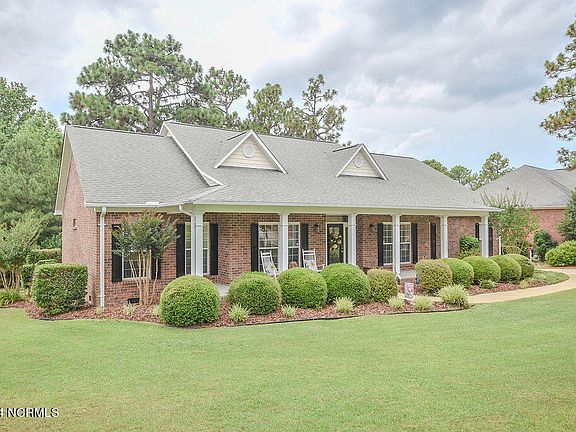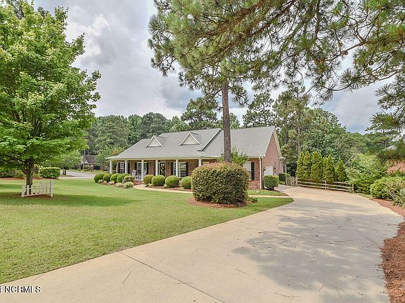 Updates by sellers: Screeened in Porch/Trex Decking/Railings 2019,Nine Zone Irrigation installed that pumps from the pond, New Carpet 2018, New Split rail fencing w/ wire mesh perfect for pets and kids. Playground behind the fence. Sellers have yard & gutter cleaning services. CPI Security System. The land behind is owned by the town of Whispering Pines providing Seasonable views of the pond. Lovely front porch for Rocking. The house was originally built with a fireplace but previous owners added the built in. Its possible the stub out for gas is still there. Sellers need lease back until August 23rd.