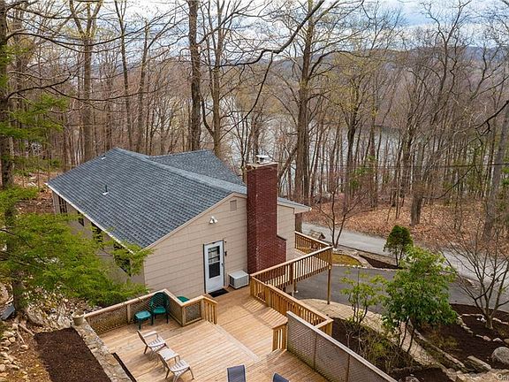 Fabulous weekend getaway, summer retreat or full-time home! Come live and play at Candlewood Lake, welcome to Candlewood Lake Estates - a private lake community with four private beaches to access Candlewood Lake and Green Pond. Enjoy seasonal views of Candlewood Lake while entertaining on the spacious deck and starlit nights, a perfect ending to summer days spent on the water. This move-in-ready home offers hardwood floors throughout the main level and features living room with stone fireplace, dining area with ceiling fan and kitchen with stainless steel appliances. Three bedrooms on the main level, hardwood floors and a full bathroom. The lower level finished living space may be used for additional overnight guests, in-home office, den, rec room, and there's also a half bath and laundry. Lots of storage space and pull down attic stairs. Only 70 miles from NYC, easy to MetroNorth trains - Peace and tranquility awaits **Submit H&B offer on contract form by Sunday, 4/18 @ 7pm**