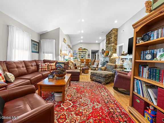 Welcome home to One Sunset Dr.! This updated ranch home is one of the nicest in the neighborhood, sitting on a beautifully landscaped .6 acre corner lot! Open floor plan highlighted by a stacked stone floor-to-ceiling gas fireplace. Updated kitchen with newer appliances and plenty of counter and storage space w/ pull out drawers. 3 generous sized bedrooms, including a primary with en-suite bathroom and jetted tub. Full, dry basement with plenty of storage space. Relax in the private backyard on the multi-level stone patio or enjoy amazing sunsets, gorgeous views and fireworks right from your front porch! Meticulously maintained and ready to move in with newer roof, siding, windows, furnace, central air unit, gutters & shed w/ electric. Just move right in!