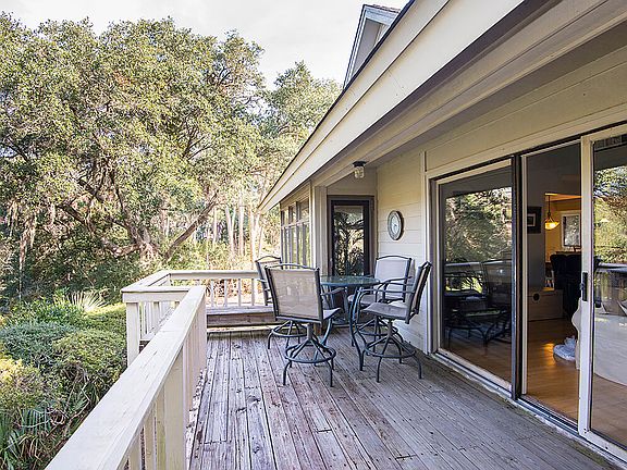 Located across the street from Kiawah's beach access--and just 200 yards to the sand--this Lowcountry home enjoys spectacular 180-degree lagoon views from nearly every room. Residents here enjoy a central Island location that is close to all of Kiawah's world-class amenities, including championship golf, world-class tennis, five-star dining, and boutique shopping. Situated on a quiet street, the inviting front porch and glass entry doors open into a bright welcoming foyer with wood flooring, beadboard ceilings, and an open stairway. The home's airy floor plan features a large great room with a beamed vaulted ceiling, brick fireplace, custom built-ins, and a wall of oversized sliding glass doors that open to an extensive back deck with covered porch area, built-in bench seating, multiple sitting venues, and long lagoon views. From here, you'll be fascinated by Kiawah's unspoiled landscapes and natural wildlife. An attendant dining area with beamed and beadboard ceiling seats six comfortably. Bright and spacious, the fully functional kitchen features ceramic tile flooring, bright cabinetry, crown molding, granite perimeter counters, stone backsplash, and granite-topped island with stainless steel range and elevated bar seating. A small breakfast nook embraced by picture windows offers additional table space. The warm sunroom with floor-to-ceiling windows offers serene lagoon views and access out to the deck offers a wonderful place to enjoy coffee and enjoy Kiawah's landscapes. Two generously sized bedrooms--one with bay windows and sliding glass doors that open to the deck--complete the first level. Upstairs, the master bedroom features wood flooring, a vaulted wood-clad ceiling, custom built-ins, picture windows, and an upgraded private bathroom. The second floor also features an additional bedroom with built-in window seats and private bathroom, as well as an open loft area with built-in shelving and space to enjoy board games and movies. Offered furnished, additional features of this home include a first floor laundry/mud room, garage, driveway with two street access points, and new interior paint throughout.