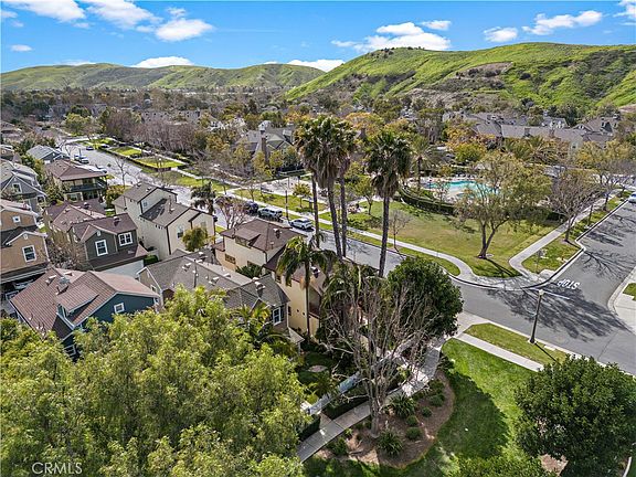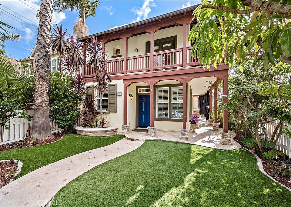 This Former Model Home boasts an amazing enclosed yard space, charming wrap-around covered balcony and scenic views to the local park, pool and hills. Hosting 3 full beds + a large office or bonus room, 2.5 baths, over 1800 sqft and a 2 car attached garage, 1 Surrey Farm will impress. Great floorplan with lovely kitchen, breakfast nook, Family room with cozy fireplace all overlooking the updated yard space with custom stone finishes, lush landscaping, synthetic turf and idyllic white picket fence. You will love the corner location as the home is filled with natural sunlight, cool breezes, unobstructed views to the greenspace, park and one of many Ladera pools. Upgrades include: New HVAC, bamboo wood floors, terracotta tiles, custom drapery, plantation shutters, recessed lighting, ceiling fans, updated thermostat and mirrored wardrobes. A large Primary suite is graced with a finished walk-in closet, airy views and private access to the covered wrap-around porch. Two additional bedrooms w/ Jack & Jill bath, built-in desk, laundry and a 3rd level loft enrich the plan and utility. Don't miss this opportunity to embrace a rare lifestyle in one of OC's premier neighborhoods full of parks, pools, hiking trails, resort clubhouses, top rated schools and so much more.