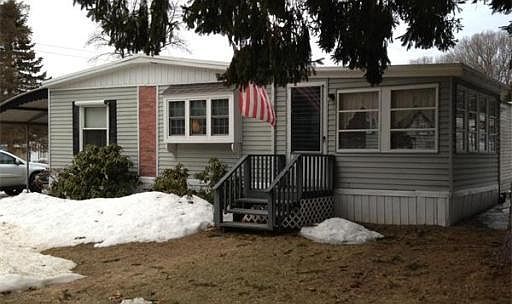 Own your own home in a community setting (NOT an over 55 park) for less than what you would pay for rent. Beautiful Mobile Home located on large corner lot. This home has been updated with new Furnace, Hot Water Tank, Windows,bathroom and fully insulated. Master Bedroom with his and her closets. Three season porch for additional living space located just off the dining area. Can easily be converted to year round living space. Deck with privacy lattice just off the porch for bbq's and outside dining. Large shed wired for electricity.Great for enjoying your hobby or just for extra storage space. Park fee of 16,500.00 included in price.