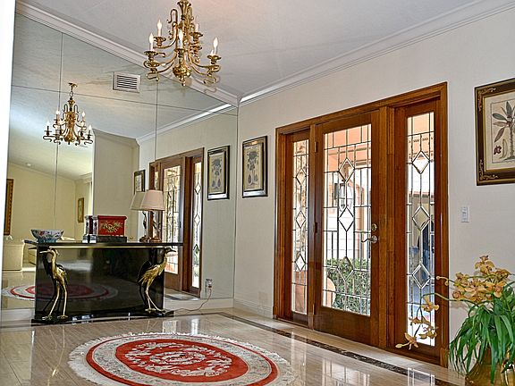 Spacious custom home om beautiful corner lot with views of the 16th hole of the Squire. A split floor plan with spacious rooms each with own private patio. This is a perfect home for entertaining. This house has been meticulously maintained and has two newer A/C units and water heaters. Gorgeous marble floors and bathrooms. Master bedroom and bath must be seen! Custom wood carpet throughout the dining and living room. Cherry paneled den/office. Large swimming pool with a hot tub
