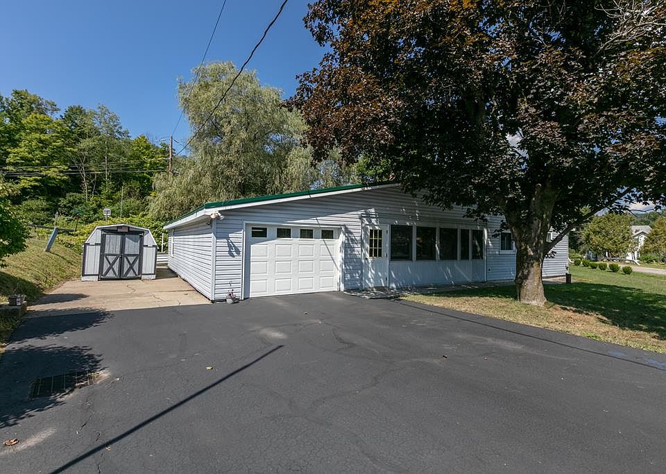 This adorable ranch home has 3 bedrooms, 1.5 bath. Newer roof and siding, adorable little stream in the back yard, and only about a 25 minute drive to HHDS, Watkins, or Ithaca for the perfect blend of country and convenience. This solid home has been meticulously maintained, with recently serviced furnace/water heater. New propane wall heater in four season room and plenty of attic storage. Garage has a large heated workshop in the back with sink/urinal and additional washer/dryer hookup, making it the perfect tinker room! Quiet little street with perfectly placed landscaping for privacy.