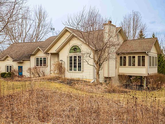 Lovely ranch style home close the The Property Owners clubhouse and pool. Well cared for 3 bedroom and 3.5 baths. Open concept with cathedral ceiling in great room featuring a wood burning fireplace with gas starter. Granite countertops have been added to this beautiful kitchen with stainless appliances, eat at center island, and cabinetry perfect for a coffee bar. Many new chandeliers and ceiling light fixtures have been added. Spacious main floor bedroom with decorative ceiling and private ensuite with whirlpool tub, double sinks and separate shower. 3 Season porch and Beautifully appointed deck with arched wood clad ceiling and slate tile flooring .The walkout lower level features a family room with wet bar and cabinetry. 2 additional bedrooms and 2 full baths. Laundry room with cabinetry. Radon system is active. The large stamped concrete patio and featuring stone bases for plantings add more outdoor space to enjoy the backyard. Nicely landscaped 2 car detached garage has a walkup storage/attic space. Sold with some furnishings, list is available.