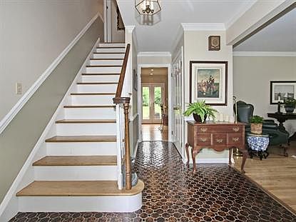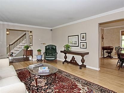 Wonderful, updated and well-maintained Colonial. HW flrs thruout. Great kit, new MBA, great outdoor patio for entertaining. Shows beautifully. Home Protection Plan Elegant crown moldings add presence to the main living area, including a family room w/extensive custom built-ins surrounding a handsome gas FP and large windows. The kitchen, complete w/custom built cabinetry was remodeled in 2005 with breakfast bar, lighted breakfront, granite countertops, a center island and top appliances - such as a Thermador oven. No detail has been overlooked. French doors to a beautiful flagstone patio and lushly planted backyard. MBR features two walk-in closets and a brand new bathroom with double sinks and curved glass shower. Newly remodeled half bath.