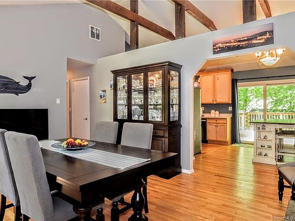 Lovely open ranch that offers a chalet feel.Situated closely to Rainbow and Fox Hill Lakes;this home offers an open floor plan with vaulted ceilings, fans, multiple decks for great outdoor dining and entertaining.Beautiful refinished hardwood floors throughout both levels, Andersen windows, 2 full baths and new kitchen appliances.New energy efficient propane heat and central air conditioning with new hot water heater and water softener. Open floor plan and high ceilings offer a bright open chalet feel home. The exterior offers multiple decks with level grassed yards on a quiet, private lane with a short stroll to the lakeside. New large shed, attached garage and many more improvements make this home easy move in and enjoy the summer. Large fireplace in living room offers wood burning insert for additional winter warmth.Many overhead fans offer a fresh breeze in summer and spring. Seasonal lake views.There is a Ridgefield Rainbow Lake association (membership is optional, home is deeded,dues is very reasonable) that offers beach area with kayak& canoe storage. Ridgefield offers top rated schools,theater,symphony,parks and town beach. There is a town golf course and ice rink along with hiking trails.