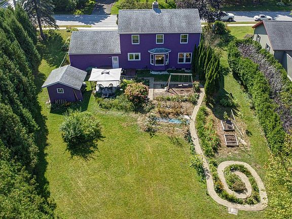 This spacious 4 bedroom 1, 3/4 bath classic colonial style home has so much to offer. The kitchen was remodeled in 2021. Expansive open concept opens the kitchen up to the dining room with a breakfast bar. Updated features include quartz and butcher block countertops, luxury plank vinyl flooring and a new double awning style window with a view of the private backyard. Appliances are all stainless steel. 5 burner gas range is a 40in commercial grade with double ovens. The refrigerator has a bottom drawer freezer. Dishwasher and hood fan are also stainless steel. Large walk in pantry with pocket door. Hardwood floors in the Dining room and first floor study were refinished in September 2024. A unique custom feature you will not find in any home is the crafted cherry paneled wall and archway trim around the dining room bay window. Don't miss the "secret" doorway to the 1st floor study or perfect family room or flex space. All 4 bedrooms & 5th bonus room on the 2nd floor have hardwood floors. Living room w/brick hearth wood burning fireplace. The 1st floor full bath was recently converted to low step-in 3/4 shower. The covered front porch is 7x34ft. 2 car garage is sheetrocked. Private backyard is lined with large cedar trees & abuts acres of town land. Patios & multiple gardens in the front, side and backyard, You will also find your very own spiral walking path which winds around matual perennial & annual gardens. All dimensions approx, Tax prebate applies.