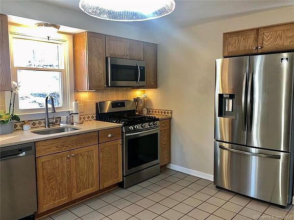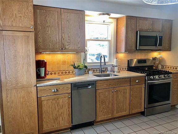 Updates galore ! April/May 2020 improvements included a Totally renovated kitchen with Oak cabinets w/ light cherry stain, anti-skid commercial grade tile floor, travertine tile back splash, granite counter top, 'no touch kitchen faucet, Samsung stainless refrigerator and convection oven with all the bells & whistle including extended warranty. 2 new Carrier high efficiency HVAC units ( cool, heat & dehumidify), Majestic windows throughout and all new gutters. Expanded Driveway replaced in 2016 that provides easy coming & going. Natural gas, city water & sewers. Pride of ownership throughout this very well cared for home that is conveniently located on a cul-de-sac street and only minutes to center of town, shopping, Yale New Haven, town & state park, etc. First floor consists of two bedrooms, full bath, kitchen & living room. Second floor is finished and includes storage and a half bath. Full basement and tons of storage. Garden shed and great deck to enjoy the 'coming soon' warmer weather!